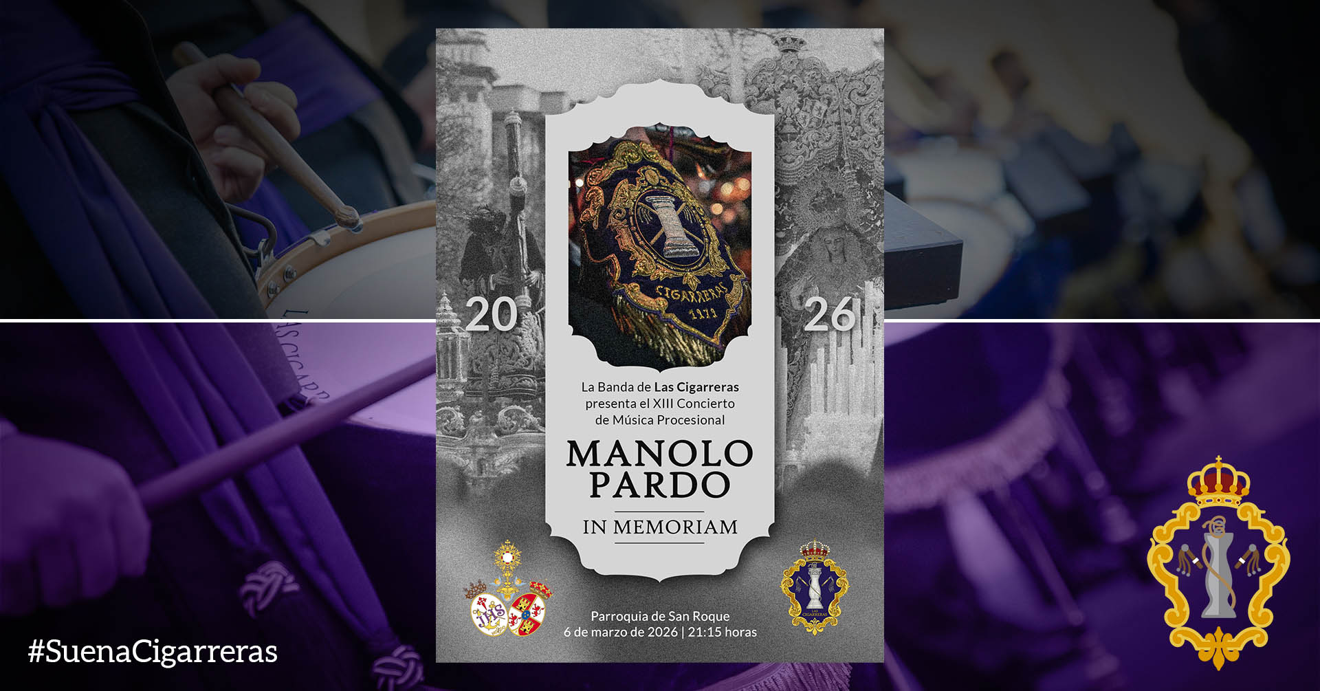 El viernes 6 de marzo de 2026 la Banda de Las Cigarreras estará participando en el CXXV aniversario fundacional de la querida Hermandad de San Roque, ofreciendo su tradicional concierto «Manolo Pardo… in memoriam».