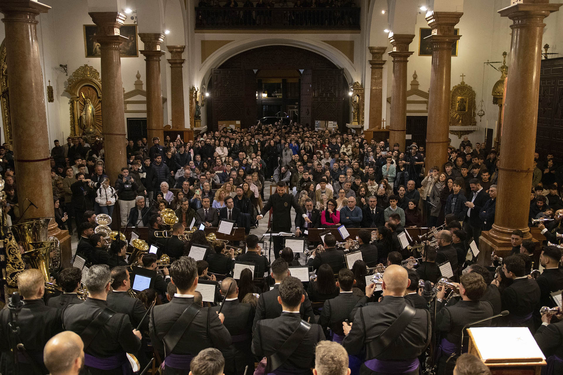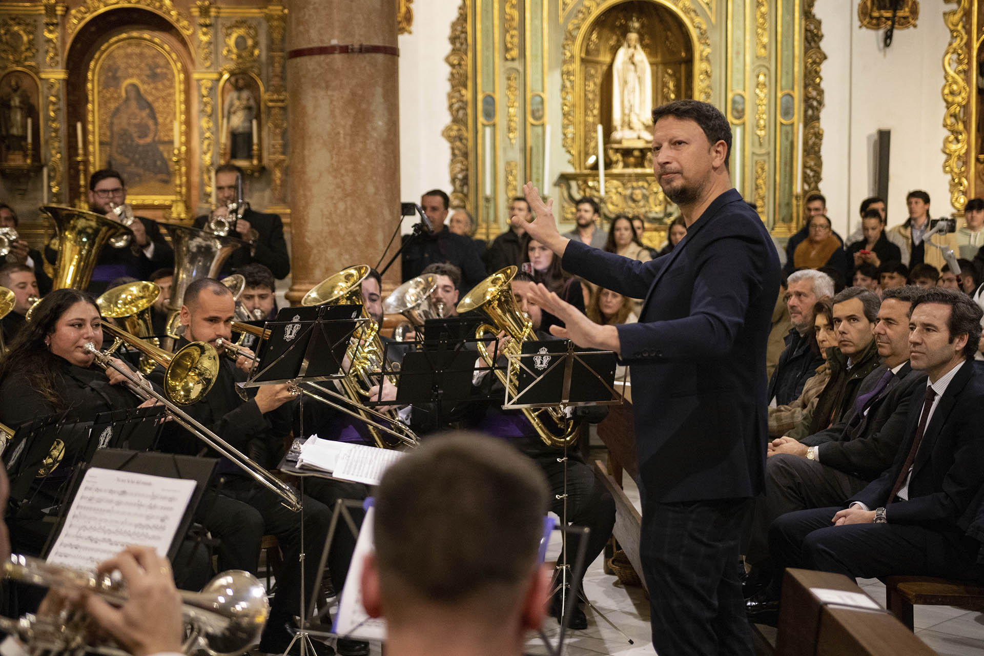 Parecía, pero no. Justo cuando el eco del último aplauso parecía anunciar la despedida y el templo de San Roque se preparaba para recuperar su silencio habitual, la música reclamó su sitio una última vez. No era un final, sino un regalo inesperado que rompió el protocolo de la clausura. En un gesto cargado de simbolismo, fue Mario Rescalvo, director de la formación en esta noche, quien asumió el mando para cerrar el círculo de la noche. Bajo su batuta, los sones de Yo soy la luz del mundo volvieron a brotar con una fuerza renovada, despidiendo el acto no con un adiós, sino con la reafirmación de que esa melodía ya pertenecía para siempre al repertorio de la banda. Fue el broche de oro perfecto: la visión del autor fundida con la maestría del director de la banda, dejando en el aire de la Cuaresma una luz que tardaría mucho en apagarse.