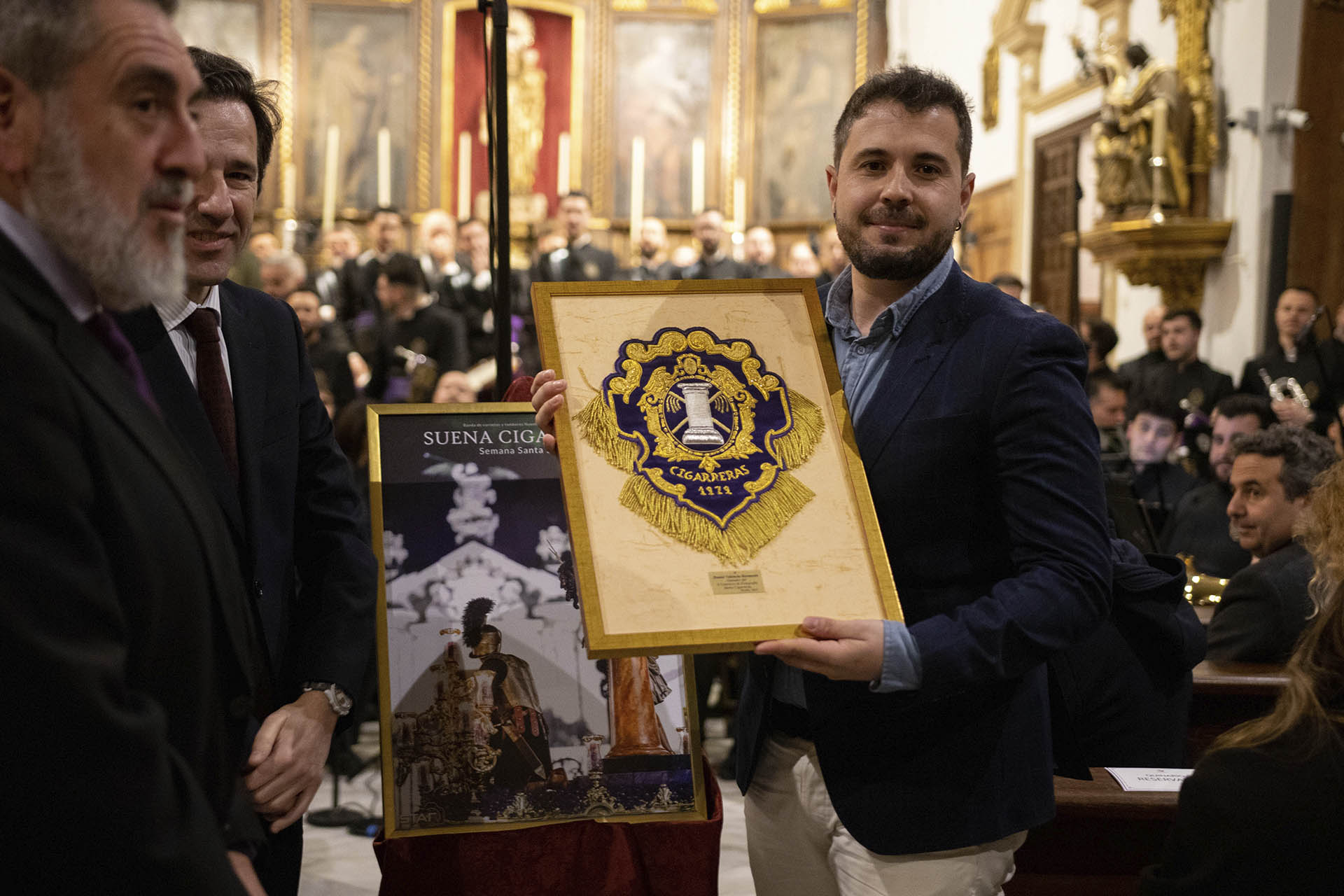 Tras un momento de éxtasis y revelación plena, el plano musical pasó a un lado para así dar paso a la presentación del cartel Suena Cigarreras 2026, obra de Daniel Valencia. Con una estética que capta a la perfección la identidad de la banda, el cartel puso la nota visual a una velada donde la música lo llenaba todo.