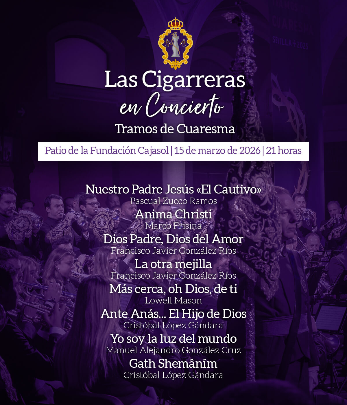 El domingo 15 de marzo pondremos el broche a nuestras actuaciones cuaresmales de nuevo en el Patio de la Fundación Cajasol, participando en las actividades que la fundación realiza bajo el título de Tramos de Cuaresma. Un concierto cuyas entradas se agotaron hace semanas.
