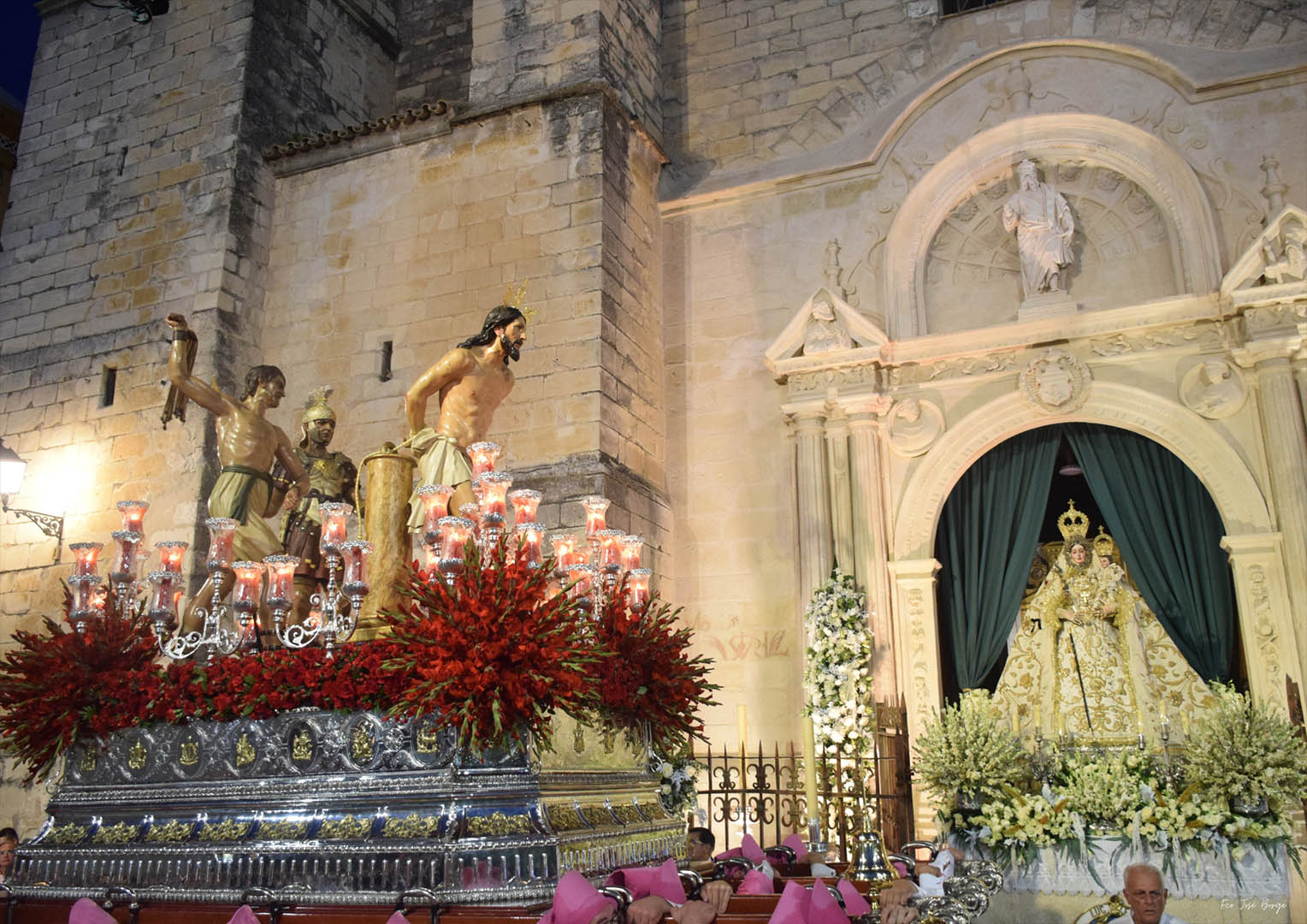 Poco antes de las seis de la tarde, los sones de marchas ordinarias nos acercaban hasta la Parroquia de Santiago, donde accederíamos al templo por la puerta lateral, quedando impresionados por la talla del Señor de la Columna, obra de Pedro Roldán en el Siglo XVII.