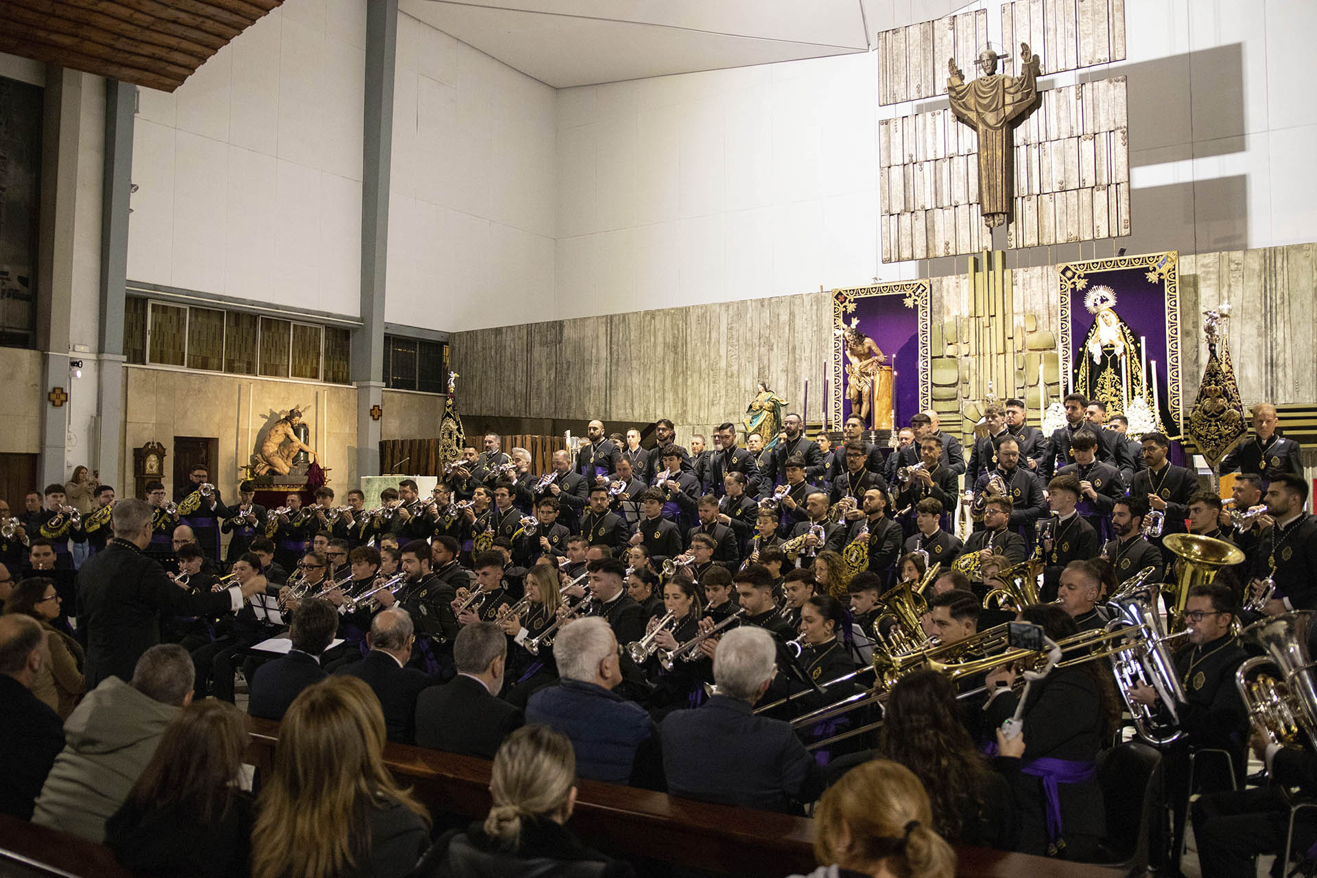 La segunda marcha a interpretar fue Réquiem, que en esta noche quisimos dedicar a dos Hermanos Mayores que apoyaron incondicionalmente la música en la Hermandad de Las Cigarreras y que nos dejaron recientemente: Roberto Echevarría y José García Pastor.