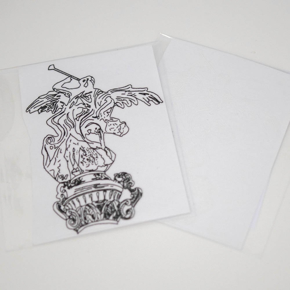 Pegatina con el ángel de la fama, en formato de impresión DTF, para poder pegar en cualquier superficie plana. Disponible en color blanco y negro.