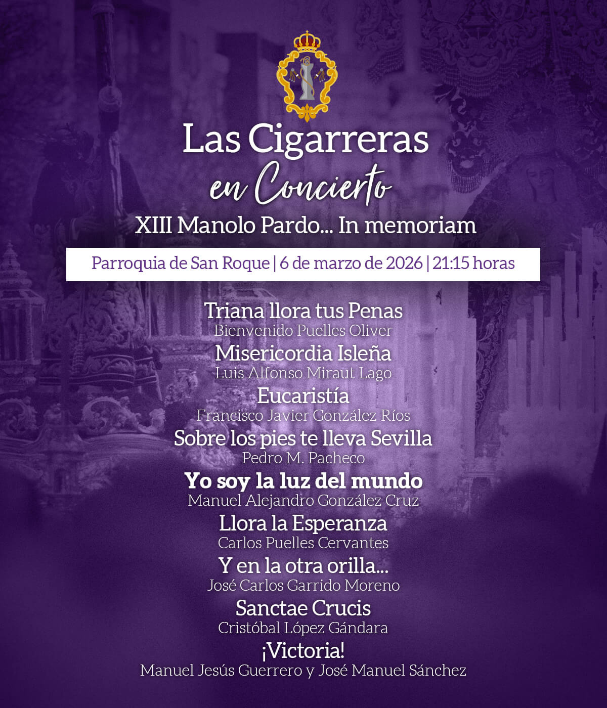 Un año más por Cuaresma, en este 2026 la Banda de Las Cigarreras tiene el placer de anunciar los detalles del que será el XIII Concierto de música procesional «Manolo Pardo… In Memoriam».